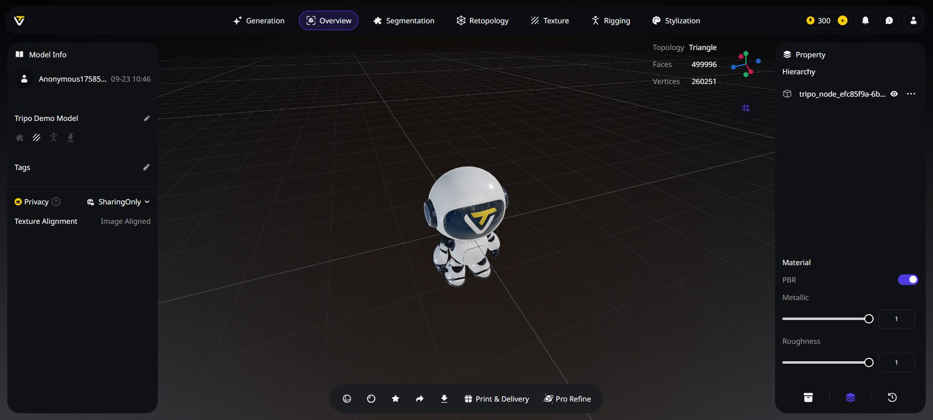 Tripo Studio 是由 Tripo3D 公司开发的一款 AI 驱动的 3D 工作空间,专为创作者、设计师、游戏开发者以及 3D 爱好者设计。它旨在通过人工智能技术革新 3D 内容创建流程,将传统的碎片化生产管道转化为高效、统一的网页端体验。该平台于近期推出,是 Tripo3D 公司在生成式 3D 领域的最新成果,基于其先前的 AI 基础模型,已吸引超过 200 万全球用户,并生成逾 2000 万个 3D 模型。