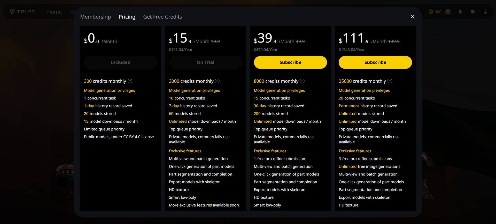 商品名称:Tripo Studio 账号或会员订阅(官方)