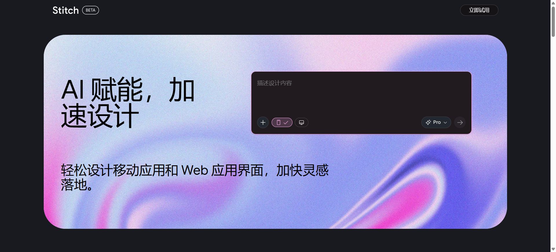 Stitch 是 Google Labs 开发的一项实验性 AI 工具,旨在通过先进的 Gemini 模型,将用户想法快速转化为高质量的移动和 Web 应用用户界面(UI)设计。该工具于 2025 年 5 月正式推出,强调高效的设计迭代和创意放大,支持从简单提示或图像输入生成完整 UI 布局、前端代码,甚至专业产品截图。 作为免费工具,Stitch 适用于设计师、开发者及产品团队,帮助加速从概念到原型的转化过程。