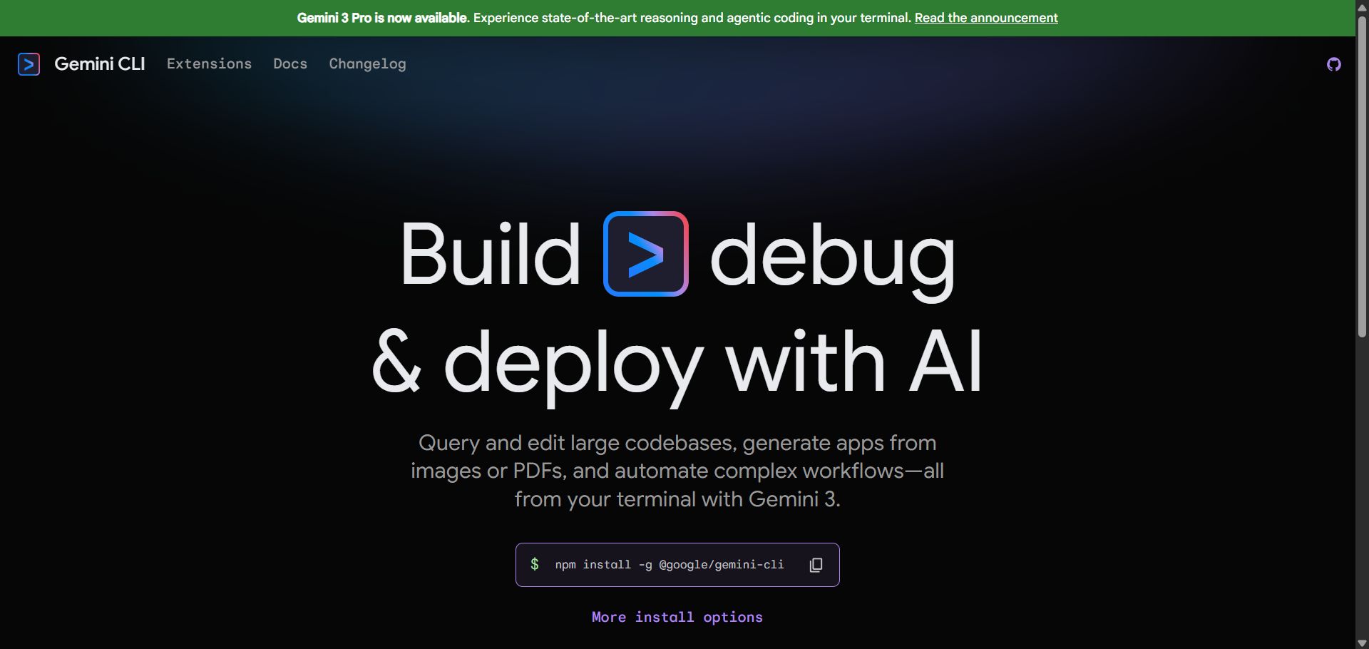 Gemini CLI 是 Google 在 2025 年推出的一个开源 AI 代理工具(open-source AI agent),它将 Gemini 大模型(目前主力是 Gemini 2.5 Pro / Gemini 3 Pro)直接带入你的终端(terminal),让开发者可以用自然语言在命令行中完成复杂的编程、调试和任务自动化。它是 Google 对标 OpenAI Codex CLI 和 Anthropic Claude Code 的产品,但免费额度非常慷慨,且完全开源(Apache 2.0)。
